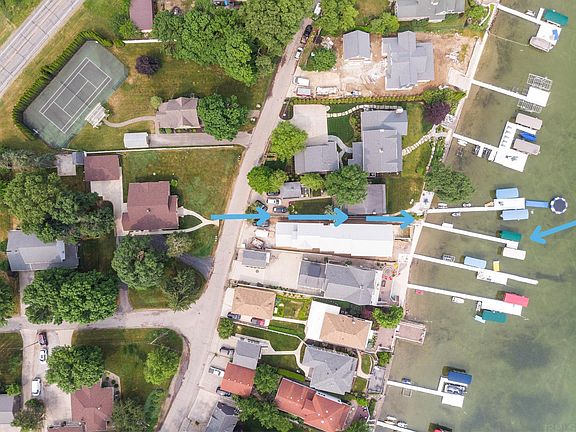 Deeded Lake Access! Incredible updated brick cottage w/ amazing highlights including huge basement, 2 enclosed porches & deeded neighborhood pier easement to prestigious Lake Wawasee mere steps away! 7’ wide access is directly across street & allows you to enjoy a fun filled season on lake w/ fantastic views & all water sports activities you desire! (Easement HOA is $150 yrly & rare opportunity to stake claim to Pier #512-C) Located just off IN-13 & nestled on impressive 0.42 acre corner lot w/ many tall trees offering shade & privacy, this stunning 3 bedroom, 2 full bath home w/ detached oversized 2 car garage is completely move-in ready & sure to wow from moment you arrive! Impeccably maintained from outside in, this solid 1930 built home has been refreshed w/ central air, roof on house & garage, chimney cap—all new in 2023! Attractive exterior boasts beautiful landscaping, power washed brick, tidy lawn & large U-shaped drive big enough for loads of parking! Inside you’ll find obvious pride of ownership, high quality craftsmanship & attention to detail w/ gorgeous original dark wood trim & doors w/ recently updated on trend flooring & paint throughout. Front entrance w/ beveled glass opens to expansive 360 sqft enclosed porch w/ painted cement floor & swing perfect for hanging out & watching the neighborhood roll by. Bright & welcoming main living area gets plenty of natural light w/ neutral color palette serving as the ideal backdrop to your own personal style. Formal dining room great for entertaining w/ modern lighting & efficient kitchen has everything you need w/ bonus back porch off featuring wrap around views. All 3 bedrooms are comfortably sized w/ ample storage including giant attic which can be finished for additional living space, apartment, bedroom, rec, etc. Main floor bath w/ tub/shower & another full bath w/ walk-in shower downstairs. Basement is very clean, has been repainted & includes office w/ window & closet (can be used as 4th bedroom), generous flex space, laundry & full wet bar—so much potential down here! Massive yard means all kinds of outdoor fun plus Indiana’s largest natural lake right across the road! You can boat to a nearby waterfront dining establishment such as The Frog Tavern, The Channel Marker or Oakwood Resort! From wetlands conservation areas to golf clubs, fine dining & trails—Wawasee has it all! Ready to have your best summer yet? Reach out today!