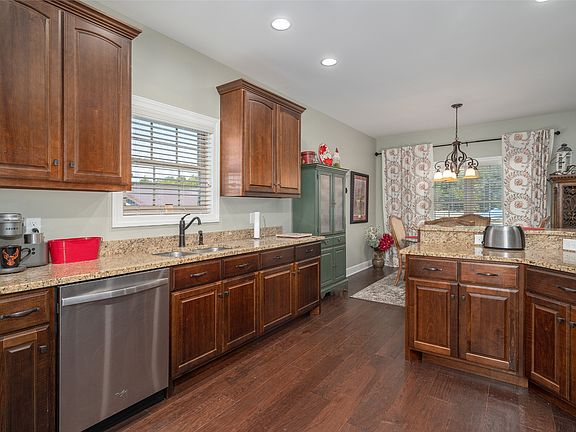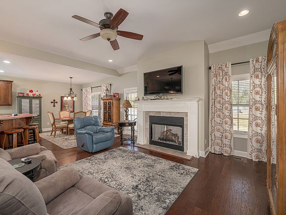 Charming All-Brick Home on Nearly 10 Acres!! This beautifully maintained home welcomes you with a charming entryway that flows seamlessly into a spacious, open-concept living area. The living room features a cozy fireplace, stunning hardwood floors throughout, creating a warm & inviting atmosphere. The generously sized primary suite offers a private retreat with an en-suite bath featuring dual vanities, a walk-in shower, and a custom closet with built-in shelving. With 3 bedrooms, 2 full bathrooms all one level, and a versatile recreational room, this home provides ample space to fit your needs. With your large acreage, envision the opportunities for all lovers of the great outdoors! The backyard currently includes two large dog runs, making it a dream for pet owners. Completing the package is a detached 2-car garage for added convenience. This home is a must-see!