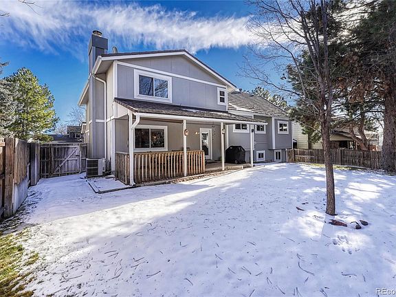 Great location inside Cherry Creek School District just east of I-25 between Orchard & Arapahoe. Walking distance to highly ranked High Plains Elementary School. 4 Bedroom house has slab granite counter tops, stainless steel appliances, upgraded cabinets, real hardwood floors, vaulted ceilings with decorative beams, bay windows, breakfast nook, & formal dining room. Family room has a gas fireplace with a beautiful floor to ceiling stone surround, wet bar, and walkout to the covered back yard entertainment patio. Gently sloping back yard is a great play area with mature landscaping, and fully fenced. Upper level has 4 bedrooms, 2 full baths, and the spacious primary bedroom has lots of natural lighting. Garden level basement is fully finished with luxury vinyl plank flooring, & wide open for a variety of uses. Other items include low HOA fees, tankless water heater, central A/C, whole home attic fan, hail resistant steel shingle roof, extra garage space & racks, front/back auto sprinkler system. All appliances convey including the washer, dryer, and freezer in the garage. Associated with the Cherry Creek Vista Park and Recreation District which includes community pool, playgrounds, parks, tennis & pickle ball courts, and more. Close proximity to DTC, Park Meadows Mall, & Sky Ridge Hospital.