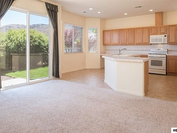 Fabulous, spacious family home in a great neighborhood of South Reno with low HOA! The kitchen has a ton of counter space, a large island and roll out shelves for added convenience. Spacious bedrooms, each with their own ceiling fans. The carpets are recently professionally cleaned and new flooring has been installed in the master bathroom. Added privacy in back yard with no rear neighbors. This home won't last!