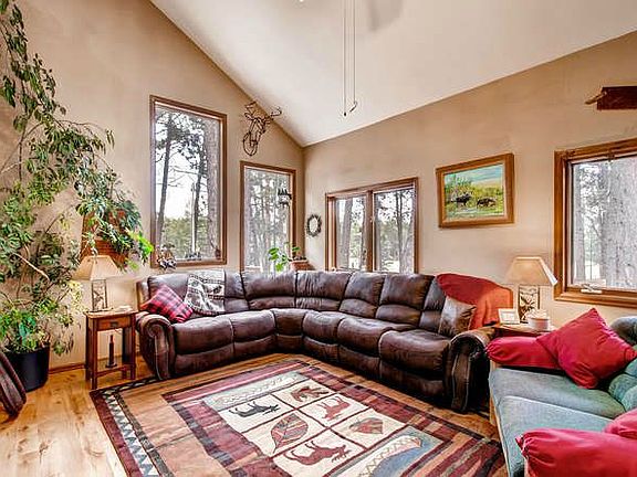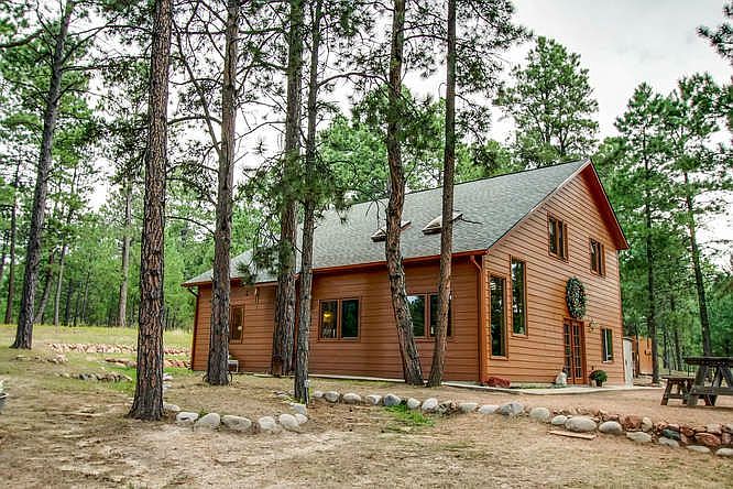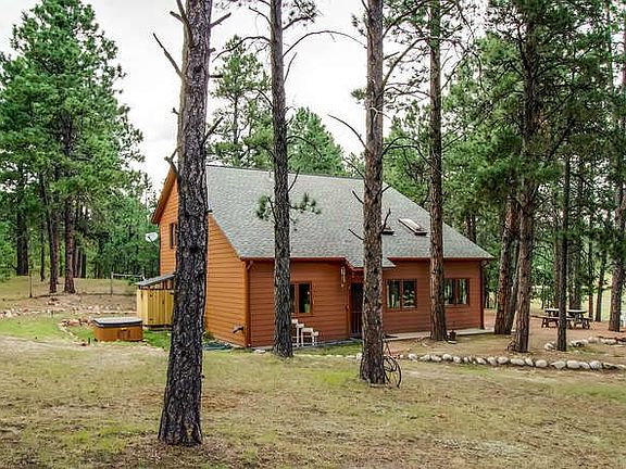 Beautiful, gently wooded, perfect park-like setting! Almost 6 acres surrounded by Black Forest and plush meadows. Lot location provides ample privacy. The home features 3 Bedrooms and 2 full baths. The Outdoor Shower is an added amenity you have to experience to really appreciate! Kitchen includes Stainless Steel appliances with Travertine Tile flooring. The dining room and Living room are open and spacious with custom wood flooring and 15 panel french doors leading into the family room. The Master and second bedroom are on the upper level with one additional room on the main. The property includes 2 out buildings for storage and shop work, swing, horseshoe area, and fire pit to enjoy during the mild evenings. Zoning allows for horses as well. On Elizabeth Way (not a thru street) which adds to the tranquility.