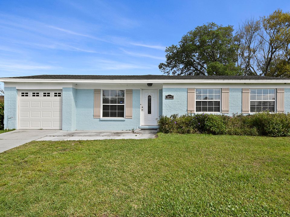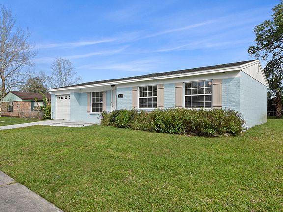 This adorable home is ready to move right into! Lives large with 4 bedrooms and 2 baths, plus a 1 car garage! Laminate floors throughout makes for easy cleaning. Walk-in shower in the master, and all kitchen appliances stay! Kitchen includes bright white cabinets and a skylight for natural light. Walk out the french doors onto your huge patio space, perfect for entertaining! Even has a high-end water softener system! Concrete block is low maintenance and roof only 6 years old. Quiet street less than 20 minutes to the beach and downtown!
