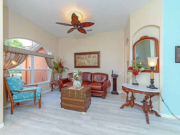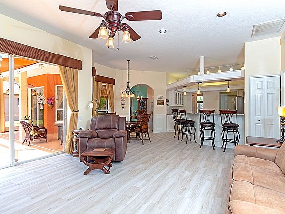Siting on a private preserve lot, this large 4 bedroom, 3 bath home with a heated pool is waiting for you to call it home. It's formal living room, dining room & family room layout is perfect for entertaining. The kitchen features GE appliances, raised wood panel cabinetry with new counter tops, gas range, breakfast bar, & butler's pantry. The large master bedroom has large his & hers closets & into its en suite with a beautiful chandelier, individual garden tub, large Roman shower and dual sinks. The fourth bedroom has a pool access bathroom, perfect as an in law suite or for your guests. Sliders from the living room, family room or master bedroom lead out to your private heated pool & Spa and natural fish pond. The pool has been resurfaced with Mar-cite, installed new handrails and updated pool equipment. Roof replaced 2 years ago. Water Heater & Microwave are new. Dishwasher & Disposal 2 years old. The home has a new whole house water filtration system & reverse osmosis under kitchen sink & refrigerator. AC unit features "blue light filtration" for mold and air. Other features, alarm system, sprinklers, storage racks in garage, beautiful glass front doors & more. Conveniently located with NO CDD, very LOW HOA, & public access to golf. No membership required. Sit, sip and enjoy your sunset views from here...HOME.