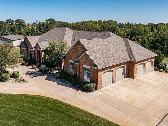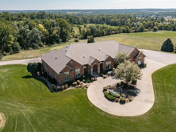 This is one property you wont want to miss! Feather Ridge Road is a one-of-a-kind, Duvel built custom home. You need to see for yourself to appreciate this home, it has too many features to list! Set on almost 10 sprawling acres, this home features beautiful architecture, custom cherry woodwork throughout, an elevator, 3 tiled fireplaces, and soaring ceilings. No expense was spared building this work of art. The stunning great room features built-ins with a fireplace, a wet bar perfect to entertain, and a wall of windows overlooking the gorgeous tree lined landscape. This exits to a beautiful deck, perfect to relax and enjoy the peaceful solitude. The gourmet kitchen includes stunning custom woodwork with a large built-in eating area. The main floor also boasts a formal dining room, an office with beautiful built-ins. The primary bedroom is fit for royalty; with high trayed ceilings, custom fireplace with seating area, dual walk-in closets, additional laundry, and a large spa-like en suite. Two additional bedrooms, laundry room, and a beautiful bath complete the main level. The walk-out lower level doesn't withhold quality. A large rec room complete with a fireplace and huge wet bar- any upscale pub would be jealous of! Ride the elevator down to the lower level where you will find an additional bedroom, full bath, storm shelter with escape hatch, and plenty of storage. If youre still not impressed, this home also includes an oversized four stall garage; two stalls are heated and air conditioned while the remaining two stalls are just heated. The lower level also boasts an enormous 60 feet deep RV garage that is heated with an oversized door, has 16 foot ceilings and is stubbed for a restroom. Two additional outbuildings behind the home are perfect for any car enthusiast or collector. Buyer has option to purchase an additional 30 contiguous acres. Schedule your private showing today and come see this one-of-a-kind majestic property!