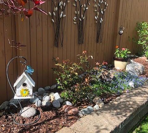 The backyard is an Oasis! Beautiful and Serene. The covered back porch is unique, pitched with wood plank and two ceiling fans. The patio has been expanded for outdoor entertaining. A large 8x10 Tuff shed sits on the side lot, an enclosed storage for a Camper/Boat. This type of storage is very rare to find! The Meadows gold course is located nearby, along with many hiking trails!