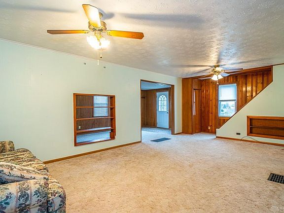 Bungalow on almost an acre!!! Driveway enters from the quiet Main St of South Vienna - new school coming! Solid bones & over 1300 sq ft of finished living space. Kitchen w/solid oak cabinets, window over sink, counterspace for prep, all appliances convey - washer & dryer hook-up addt'l hook-up in basement for preference. Dining room w/hardwood floors, wall of windows allowing natural light to flood the space, a huge closet for the extra & ample space for a family table - flowing into the nice size living room. Enjoy family room w/cozy fireplace encased in custom stone - True 2 bedrooms on the main level w/space for an office-zoom/classroom, craft area, nursery or grand closet. Full bathroom conveniently located, features: Vanity w/storage, mirror cabinet, tub/shower combo w/glass sliding doors. 3rd bedroom upstairs is gigantic - the possibilities are endless & full of great memories. Uniquely perfect deck outside, 2 car attached garage, full unfinished basement & mature yard.