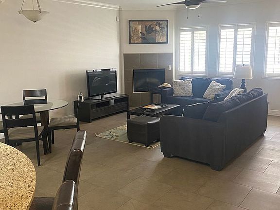 Three-bedroom townhome located in Scottsdale. Comes fully furnished and prepared for immediate occupancy. The layout is spacious, featuring a generously sized great room with a fireplace and dining space that connects seamlessly to the gourmet kitchen, complete with a breakfast bar. The expansive master suite boasts dual sinks, a separate shower and tub, a walk-in closet, and a personal balcony. All the well-proportioned bedrooms are situated upstairs along with the laundry area. Conveniently located just a few steps from the impressive community pool, with a one-car garage included. Leasing options available for a minimum of three months.