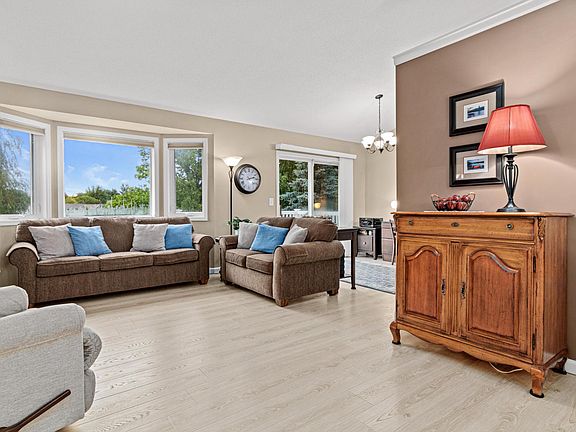 Enjoy wetlands views, no backyard neighbors, and multiple outdoor spaces in this beautifully maintained 3-bedroom, 2-bath split-level with a 3-car garage. Set on a landscaped lot near parks, playgrounds, schools, and shopping, this home features a newer roof and siding (just 2 years old) for peace of mind. The main level offers vaulted ceilings, hardwood floors, and a bright, open layout. The kitchen includes ample cabinet space, a center island, and a dining area that can also serve as a flex space for a home office or play area. Two bedrooms and a full walk-through bath complete the upper level.