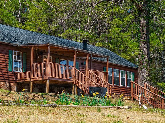 8+ Acres ... Beautiful hilltop views from the covered front porch. You can hunt in the back yard. Tinker in the workshop w/electricity. Entertain on the oversized deck and patio or simply enjoy the country life! Custom built manufactured home w/ cedar siding. Inside offers 4 bedrooms, 2 baths, living area w/rock faced wood burning fireplace, pine floors, dining room, kitchen w/ lots of cabinet space, breakfast area w/ doors leading out to the deck, laundry room and more. Tons of storage space. Kitchen appliances to remain. New roof. New HVAC. Freshly painted interior. Flower beds adorned with mountain rock. Newer shed on property in addition to 2 older storage buildings. MUST SEE.