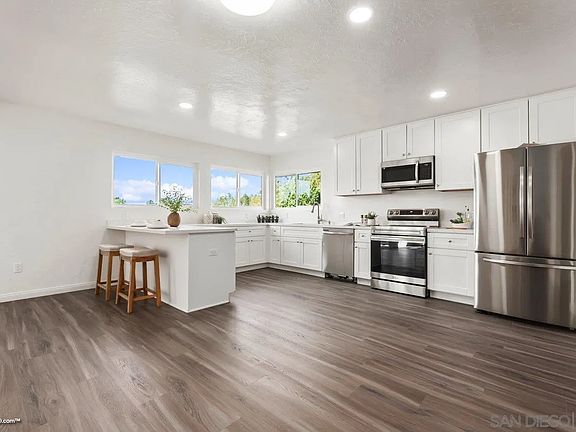 Welcome To this Exclusive Remodeled Move-In-Ready Single Story Home with beautiful views and pool located on a cul-de-sac street! You will absolutely fall in love with this house and NEIGHBORHOOD! This amazing home with a SPACIOUS floor plan is perfect for entertaining with family and friends! As you enter the home, you will see 3 spacious living areas with a fireplace, a fully remodeled kitchen, showcasing new exterior and interior paint, vinyl plank flooring, recessed lighting, and NEW windows! This continues into the KITCHEN featuring an OVER-SIZED kitchen, a great spot for gatherings and entertaining. The finishes are beautiful with lots of cabinets, quartz countertops, and NEW APPLIANCES. There are two sliding doors providing tons of natural light and giving you easy access to the backyard. The primary bedroom has lots of closet space, a sliding door giving you access to the patio and beautiful PRIVATE en-suite bathroom that features all the amenities you desire with two new vanities, mirrors, lighting, and fully tiled EXTRA large walk-in shower. In addition to the abundance of space, this home has TWO garages and tons of extra parking to park RV or toys! Don't miss out on this beauty!