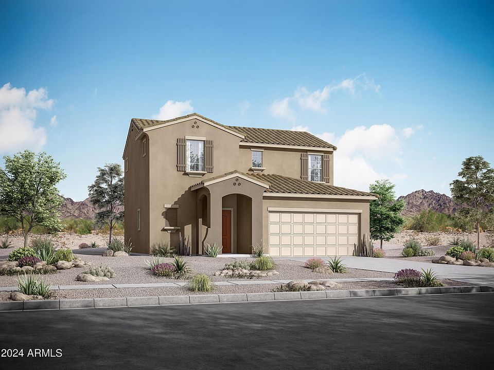 New home ready for move-in. Two-story Arbor floorplan with a Spanish exterior elevation style. This 3-bedroom home offers a private Owner's Suite and bathroom. The kitchen features stainless steel appliances and stylish cream-tone cabinetry and beautiful white quartz countertops. Throughout the home, find upgraded baseboards and wood-like tile. This community is fully gated and offers a community pool as well as several parks. Home warranty included.