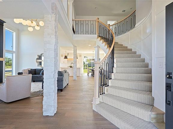 Curb Appeal with Dimensional Landscaping, Beautiful Front Elevation and Double Front Door. Greeted by the Well-Known and Highly Sought After Curved Staircase, Sky High Ceilings and Open Layout. The Trim Details in this Home Portrays True Luxury - Ship Lap Ceiling in Formal Dining, Wainscoting Detail and Floor to Ceiling Ship lap Surrounding Fireplace. Main Level Master Suite with Double Door Entry, TWO Walk in Closets and Breath-Taking Master Bathroom. Master Bathroom Features Quartz Counters, Double Vanity, Linen Closet, Custom Built Storage Hutch, Soaker Tub and Enormous Walk in Shower with Dual Shower Heads. Curved Staircase Leads you to Loft Space and 4 more Bedrooms! Home is Complete and Ready to Move In. NKCSD - Staley High School. Hunt Midwest Community! Community Swimming Pool! Walking Trails! Taxes and Sq Ft Estimated.