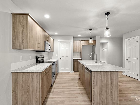Be Mine at 3.99% – promotional rate available! Ask a Sales Specialist for details. Embrace the comforts of a brand new home in Caldwell, Idaho. The Hugo 1650 is endearingly charming and reassuringly practical. The main level welcomes occupants and guests alike with open and friendly living spaces. A spacious kitchen island overlooks the living room and dining room. Easy access to the yard is just right outside of the dining room. Head upstairs where a primary suite spans the entire rear of the home and contains a walk-in closet and spacious en suite bathroom. The two other bedrooms and the laundry room are also situated upstairs along with a full bathroom. The garage offers plenty of space to park cars and toys or use as storage. A versatile layout provides endless possibilities for customizing the home to suit your needs. With thoughtful touches throughout, the Hugo is designed to enhance your lifestyle. You'll quickly feel right at home. Photos are of the actual home!