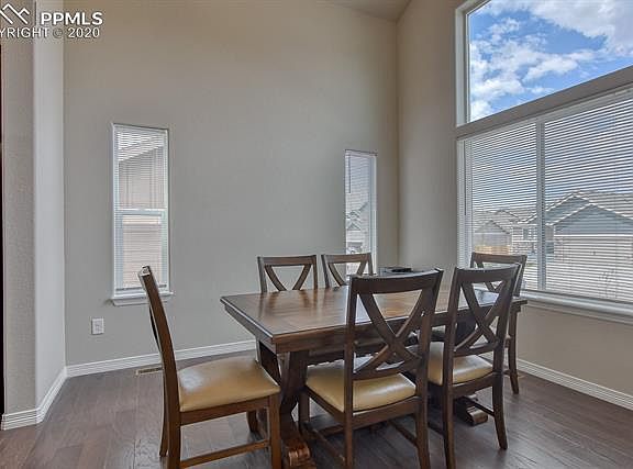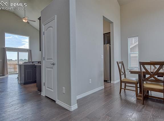 AMAZING Brand NEW Saint Aubyn Dawson 2 story with Main Level Master Suite and incredible vaulted ceilings with the natural light just oozing in to light up your life! Built in 2019 and lovingly cared for by its only owner. Upgrades galore! Mostly level lot that is fully landscaped with front and back sprinkler system and rear privacy fence. Mountain views from your backyard. A covered front porch welcomes you in to the extremely tall ceilings of this open floor plan. Beautiful hardwood floors stretch throughout the main floor living areas. Recessed lighting and ceiling fans. Granite and stainless steel in the the kitchen. Breakfast bar, kitchen pantry and formal dining. Windows! Windows! Windows! provide loads of natural light! Upstairs bedrooms share a Jack n' Jill style full bath with large vanity. Loft area upstairs makes a great home office or study area. Minutes from COS Airport, Schriever and Peterson Air Force Bases, and Ft Carson Army Base. Neighborhood has a Community FB page that provides answers to so many homeowner questions and a multitude of resources.