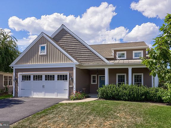 Welcome to Alden Place, a community where comfort and lifestyle come together in this beautifully maintained and stunning former builder’s model home. Lightly lived in as a second residence, the property feels like new and is filled with thoughtful upgrades and timeless charm. Step inside to an open-concept layout designed for both elegance and practicality. The spacious living and dining areas offer multiple seating options and a cozy gas fireplace -framed by built-in shelving—perfect for gatherings or quiet evenings at home. The chef’s kitchen is a showstopper with a large walk-in pantry, gas cooking, quartz counter tops, center island with breakfast bar, concealed trash receptacles, and abundant storage. The primary suite offers a relaxing retreat with a custom walk-in closet and a spa-inspired bath featuring an upgraded tiled shower. A second bedroom filled with natural sunlight, private office, and convenient laundry area complete the main floor. Guests will love the finished lower level, which boasts a bedroom, full bath, and a spacious recreation room (pool table is negotiable). Entertain with ease with the lower level kitchenette, complete with a bar, beverage cooler, and sink. Outdoor living is equally inviting, with a maintenance-free deck, a covered lower patio, and a welcoming front porch. Additional features including engineered hardwood flooring, keyless entry, a two-car garage, built in shed, efficient gas heat, and smart-home technology -control lighting, and window shades from your phone. At Alden Place, a premier 55+ land lease community where you can build the lifestyle you’ve dreamed of with optional membership to the community center, offering an indoor pool and spa, fitness room, billiards, ballroom, and daily activities. The community adjoins scenic rails to trails for walking and biking and includes two peaceful catch-and-release ponds. Conveniently located near major highways and the turnpike, This home blends beauty, function, and location in one perfect package.