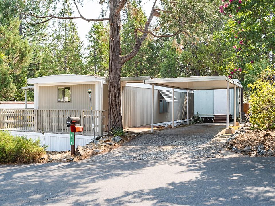 This cute updated 1 bedroom 1 bath home sits on a nice lot with a storage unit, covered carport, and is in Olympia Glade Mobile Home Park 55+. This light and bright cozy home has been updated with new paint inside and out, new flooring, stove, microwave, light fixtures, and more. Enjoy the large covered deck for year round outside living. Convenient location just minutes to movie theaters, entertainment, shopping, grocery stores, medical, dental, and Sierra Nevada Memorial hospital. Close to the park's club house, swimming pool, and spa. Buyer to qualify with onsite manager. Space rent is $795 per month plus utilities.