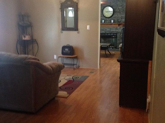 The prettiest doublewide you will ever see! This spacious 3 bedroom, 2 bathroom home has gorgeous updates and tons of space. Enter into a lovely living room which leads to a spacious den with built in shelving and a gas stone fireplace. The kitchen is modern with stainless appliances, island workspace, glass tile backsplash, laundry and pantry room. There are 4 large bedrooms and the master suite features a huge walk in closet and enormous bathroom with 2 sinks, separate shower and soaking tub. Outside: 1 full acre with plenty of parking, fish pond with waterfall, 2 storage sheds with brick walkway and 12x20 patio for outdoor enjoyment. Trees on surround the back yard.