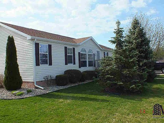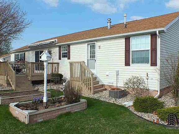 Raisin Ridge Mobile Home Park, very clean well cared for home in move-in ready condition, 3 bedrooms, 2 full baths, large kitchen, large living room and large family room with fireplace. Raisin Ridge has a community park with swimming pool. Home is located at the end of a cul-de-sac with open field next to home for additional privacy. Curtains in home do not stay.
