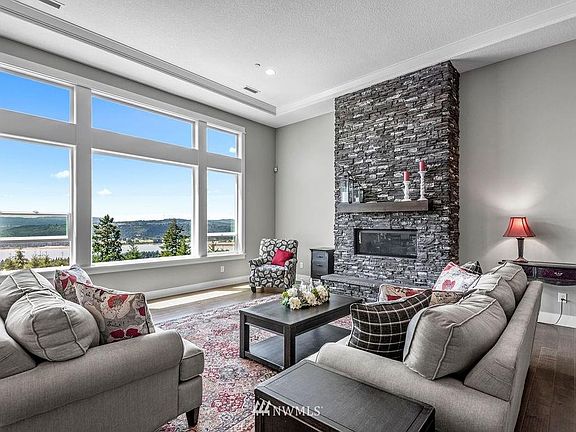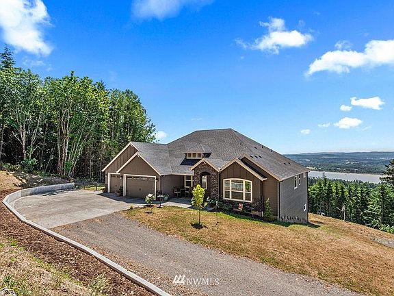 Beautiful Columbia River View sets the stage for this lovely home on over 2 acres in the desirable community and school district of Kalama. Quality finishes throughout including solid surface countertops, fantastic kitchen, engineered wood floors, trayed ceilings, butlers pantry and more. Single level living with finished daylight basement including second full kitchen, spacious bedroom, full bath, expansive family room, exercise room could be fifth bedroom and plenty of storage. Just minutes from downtown, the Columbia River's sandy beach, walking path and marina, as well as I-5. Commute to Vancouver or Portland? No problem...it's a breeze. Only 30 minutes typically to hit either bridge...!-5 or 205. Look at this immaculate beauty!