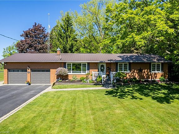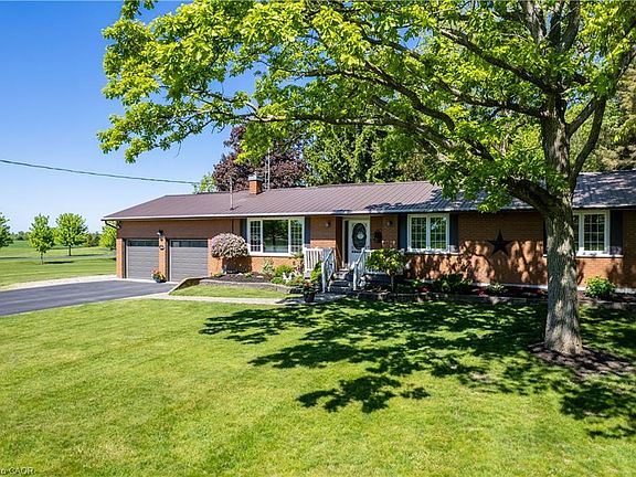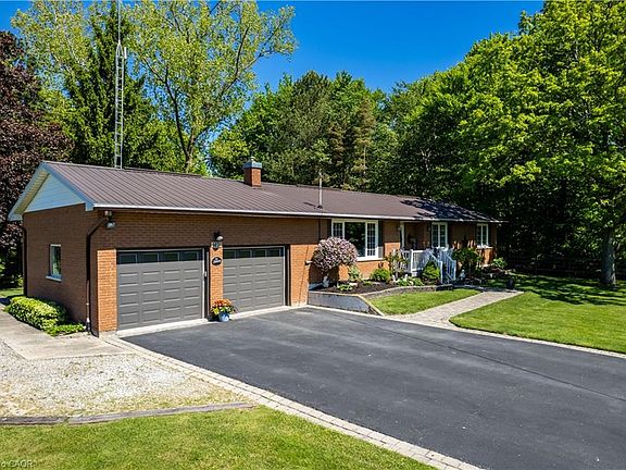 Charming brick bungalow nestled in a tranquil rural setting is the perfect blend of comfort and nature. This gorgeous brick bungalow offers the ideal blend of peaceful living and convenient proximity to amenities and ideal for commuters. It offers a timeless design and thoughtful layout ideal for families or multi generational families alike. Inside, the home is further complimented by a large, bright living room with fireplace that serves as a welcoming space for relaxation and gatherings. A separate dining area, complete with sliding doors that lead to an expansive deck overlooking the backyard—a perfect setting for enjoying outdoor meals or simply taking in the tranquil view. The spacious eat-in kitchen offers ample room for both cooking and casual dining, making it ideal for family meals or entertaining guests. The home boasts a finished basement featuring a cozy rec room with fireplace, games room and hobby room or use as additional storage space. The oversized two-car garage is a standout feature, with bonus stairs leading directly to the basement. This intelligent design ensures ease of access and practicality to this already impressive property. Step outside into a park-like backyard. This beautifully landscaped property invites you to enjoy serene moments, stunning sunrises and sunsets. Walking paths weave through the trees, offering a peaceful escape to soaking in the beauty of the surroundings. This charming bungalow is more than just a house—it’s a lifestyle. Don’t miss the opportunity to make this stunning property your own.