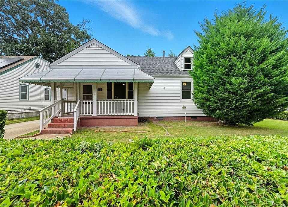 Charming 3 bedroom, 2 bath Cape Cod home in the desirable Bayview Beach area of Norfolk. This property features a bonus room that can serve as a 4th bedroom or office, living room, dining room, and galley kitchen with original hardwood floors in the living and dining areas. Large walk-in closet, and there is a huge floored attic offering plenty of storage. Sitting on a spacious corner fenced lot, the home offers a covered front porch, deck, 2 sheds, driveway spaces with additional street parking. All major updates including windows, roof, water heater and HVAC have been done. Just blocks from the Chesapeake Bay and minutes to Naval Bases, interstates, shopping, and dining. A great opportunity to own in Bayview with flexible living space and storage inside and out.