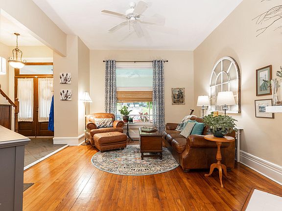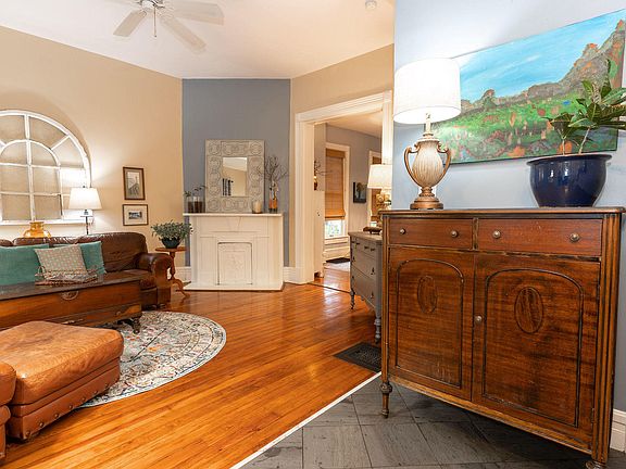 This classic Victorian, circa 1900, has been updated and offers loads of character and charm. With 3 stories, 5 bedrooms, 2.5 baths, and a flex room ~ this offers plenty of opportunity for families living, educating, and working from home. The formal living room has a decorative fireplace and pine floors. This connects well to a dining room which has exposed brick walls, which also continue in the kitchen. The eat in kitchen has all stainless-steel kitchen appliances, slate floors, and a large pantry. You'll love the cozy den on the back of the first floor, with a game closet. On the second floor the large front bedroom also has a spacious bonus room. This would provide an excellent area to create a walk-in closet, or to add an ensuite bathroom. Also on this floor are bedrooms 3 and 4, which both have access to a large ensuite bath which is ceramic-tiled on the floors and shower, and has a separate tub. There is also a second full bath on this floor with a shower. With this layout, you'll appreciate the second-floor laundry. On the third floor is a 4th and 5th bedroom. Each room has a closet, and both are heated and cooled by a mini-split unit. Right now, one room is set up as the exercise room. Off the kitchen is a deck which is half-covered and half exposed. The backyard is a great oasis, with mature trees shielding you from neighboring homes and creating a perfect spot for a hammock. The home comes with a one year 2-10 Home Warranty, and the heat/air have been PRE-CERTIFIED! Included: Window AC, washer, dryer, refrigerator