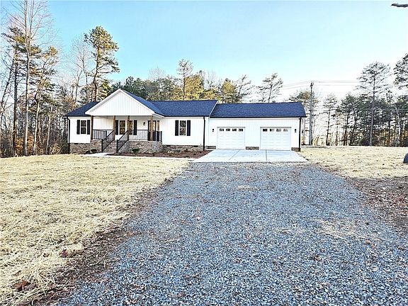 Brand new home on the edge of Belews Creek on 2.78 acres! 3 bedroom/ 2 bath home with nice open floor plan with the living room open to the kitchen, Primary split from the other bedrooms, Granite counter tops in the kitchen and bathrooms, vinyl plank flooring throughout, stainless appliances in kitchen including refrigerator, covered front porch with stained 6 inch posts and easy to maintain railings, back deck with easy to maintain railings and board and batton vinyl siding to complete the farmhouse look. Plenty of room for your future shop or detached garage to keep your boat in. You are within a couple miles of the Belews lake access.