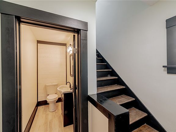 The property includes two updated bathrooms, featuring modern fixtures and finishes. The powder room downstairs and the main bathroom upstairs have been completely upgraded.