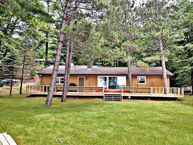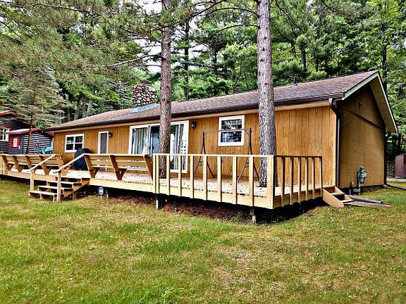 CATFISH LAKE CUTIE - SAND, SAND, SAND, LEVEL, LEVEL, LEVEL!! REALLY!!! 110 ft. of sand frontage with southern exposure on the Jewel of the Eagle River Chain - Catfish Lake. This cutie is year around with two bedrooms, a full bath, sauna and fieldstone fireplace - all the things you need for a true northwoods getaway. Enjoy swimming, boating the chain of 28 lakes, relaxing on your lakeside deck which is the entire length of the home or sitting in the shade under the towering pine trees that adorn the lot. There an attached,insulated 2 car garage with heater for toy storage as well as vehicle parking, a blacktopped drive and enough privacy to enjoy private time with family and friends. See document tab for a list of updates and inclusions. Make your dreams a reality with this cutie!
