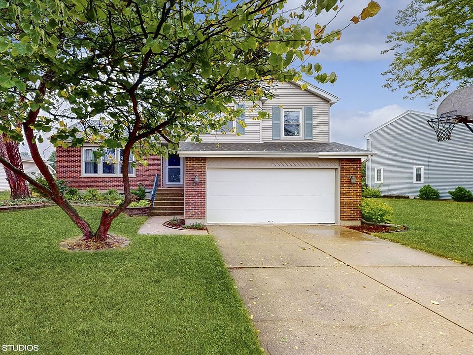Welcome to your dream home! As you step inside, you'll be greeted by soaring vaulted ceilings and gorgeous hardwood floors that stretch across the main level. This updated 3-bedroom, 2.5-bathroom home blends style and comfort effortlessly. The kitchen is a standout with its quartz countertops, breakfast bar, refreshed cabinetry, and sleek Stainless Steel appliances. It opens up to a spacious family room with matching hardwood floors and easy access to a refreshed deck and beautifully landscaped yard. On this level, you'll also find a convenient powder room, a mudroom with built-ins, and a 2-car garage. Head upstairs to the primary suite, which offers a large bedroom with a ceiling fan, custom closet organizers, and a relaxing en-suite bath with a newly tiled shower. Two additional bedrooms, also with ceiling fans and closet organizers, and an updated hall bath complete the upper level. The partially finished basement is versatile, perfect for a home office, playroom, and craft space, and it even includes a workshop and storage space. Practical updates like new light fixtures, window treatments, newer appliances, a furnace with a humidifier, newer windows, and refreshed landscaping add extra value. Situated on a quiet street, this home is close to parks, top-rated District 54 and 211 schools, restaurants, shopping, and highways.