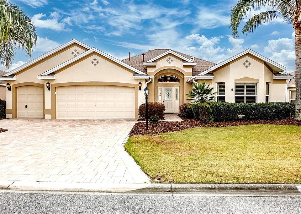 ~~BOND PAID~~ **BEST LOCATION 1.1 mile to LAKE SUMTER LANDING** ~~NEW ROOF 2020~~ **SOLAR TUBES** ~~PLANTATION SHUTTERS~~ **GOLF CART GARAGE** ~~GRANITE~~ **SS APPLIANCES** ~~NO POPCORN~~ **freshly PAINTED EXTERIOR AND INTERIOR ^^^^^^^^^Introducing the exquisite LANTANA model, a DESIGNER home offering unparalleled proximity to LAKE SUMTER LANDING MARKET SQUARE. Nestled in the sought-after Village of VIRGINIA TRACE with the BOND fully PAID, this remarkable property boasts a two-car garage with an additional GOLF CART GARAGE and pull down stairs leading to ample attic storage. Recent upgrades include fresh EXTERIOR and INTERIOR paint, a NEW WATER SOFTENER and textured paint floor finish ... All in February 2024, complemented by gorgeous PAVER driveway, tasteful landscaping and charming carriage lights that adorn the exterior. The ROOF was REPLACED in 2020, while the hot water heater dates 2015 and the HVAC SYSTEM was updated in 2017. Step inside to discover a meticulously maintained interior adorned with GRANITE countertops, PLANTATION SHUTTERS and plush new carpeting (Feb. 2024) in the bedrooms, with LAMINATE FLOORING gracing the living areas. The primary suite has been thoughtfully modified to feature an extra spacious WALK-IN CLOSET, alongside a luxurious en-suite bathroom complete with a WALK-IN SHOWER, SOLAR TUBE, GRANITE countertops, and ever new popular ACRYLIC SHOWER. The laundry room is well-appointed with cabinets, counters, and a convenient BROOM CLOSET. The well-equipped kitchen boasts a closet PANTRY, STAINLESS STEEL appliances (refrigerator and electric stove purchased February 2024)(PLUMBED FOR GAS), POT DRAWERS, and another SOLAR TUBE that floods the space with natural light. Notably, there are NO POPCORN ceilings throughout the home. offering added convenience and versatility. The guest bathroom features GRANITE countertops, a shower-tub combination, and a SOLAR TUBE, while the living room also benefits from an abundance of natural light, courtesy of its own solar tube. Beyond the living space, the ENCLOSED LANAI offers a generously proportioned 24x12 footprint with an EPOXY floor, providing a serene setting for relaxation and entertainment. Boasting an enviable location mere moments from LAKE SUMTER LANDING, this popular DESIGNER model has been gently used and presents an incredible opportunity to embrace the quintessential Florida lifestyle. Don't miss your chance to make this exceptional property your own.