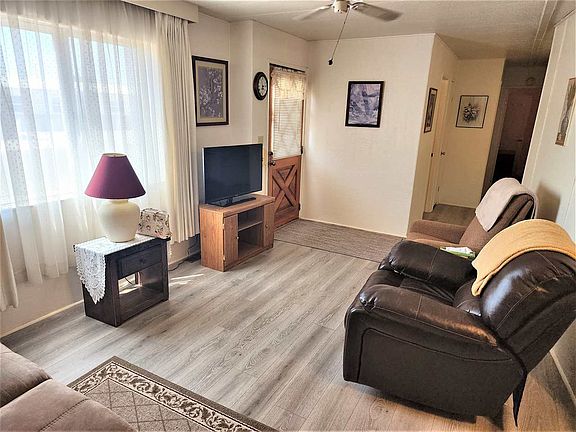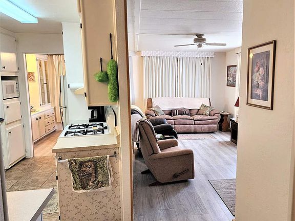 This beautiful manufacture home is ready for you and all you need is your clothes and toothbrush. Completely furnished, this 2 bedroom 2 bath home is located in 55+ community where HOA is only $150 annually. The home features new flooring in living area, new paint in certain areas, new ceiling fan, new exterior paint, large AZ room, includes washer and dryer, linens, towels, cooking utensils, everything in the house stays. call me now for showing!