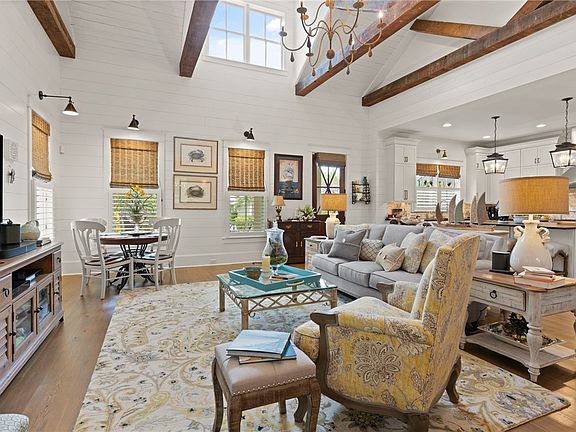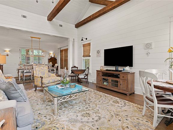 Step into luxurious island living in this fully furnished home. Enjoy the private back yard, with fabulous entertaining area, over looking Sea Palms Golf Course. Entering this spectacular home, you will find an open concept as the living room, with spectacular beamed ceilings, adjoins the custom chef kitchen boasting a Wolf gas ove/stove and Sub Zero Refrigeration. Enter the dining room next, that is met by a keeping room with a view.