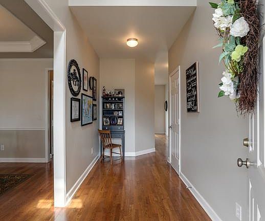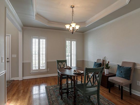 Lovely home with sand/finish hardwoods downstairs.Separate dining room,large walk in pantry,2 fireplaces,large master suite,nice bonus room,great backyard w/patio and herb garden backs to tree line. Plantation shutters. Neighborhood sidewalks and pool.