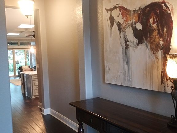 Built 2017/ Beautiful hill country 1-story custom home sits on 1.15 acre lot in Windmill Ranch/gated community. Modern finishes, open layout, an abundance of light & high ceilings w/ crown molding throughout. GOURMET kitchen includes granite counter-tops w/ tile back-splash, custom cabinets, stainless steel appliances, + gas cooking, w/ built-in microwave and double stacked ovens. Luxurious master retreat features trey ceilings, Jacuzzi tub, tiled stand-up shower, dual vanities + dual closets. Digital security + water softer. Large covered backyard patio. Stone/brick exterior, 3 car garage + long driveway. Home is partially fenced and has lots of privacy.