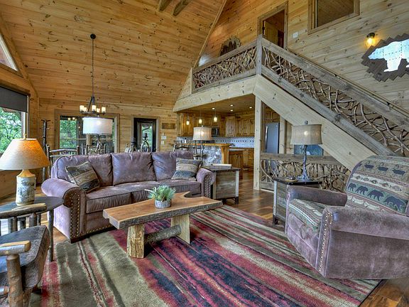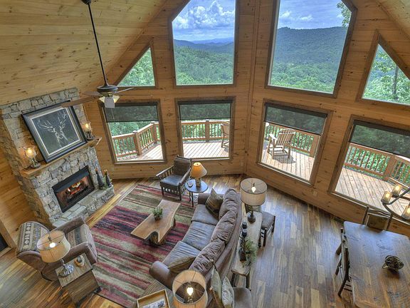 Sprawling Mountain Cabin boasting breathtaking long & close range views of the beautiful N Ga Mountains! 3 spacious master suites (one with its own private deck) on each level, this home can host multiple guests as a short term rental. With a wall of windows, no matter where you turn the views are incredible. Butlers pantry, granite counter tops, 3 soaring stone fire places, beautiful wooden features such as natural hardwood flooring, wooden beams along the cathedral ceiling & wooden finishes throughout, theres a true Appalachian feel to this cabin! The lower level offers a full wet bar & lounge area w access to one of the multiple decks which allow you to step outside & take a deep breath of fresh mountain air or relax in the hot tub! The screened in porch has a beautiful stone fire place to cozy up in front of on cool evening to watch the sunset! Completely turn key-great location off Weaver Creek-so close to Downtown Blue Ridge!