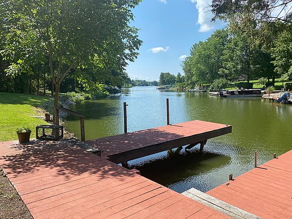 Waterfront Home with 140' of shoreline! Beautiful Views! 2 Car Attached Garage and 3rd Garage Lakeside - Perfect for storing water toys! Vaulted, Beamed Living Room, Finished Walkout Lower Level! Newer Mechanics, Appliances & Windows!
