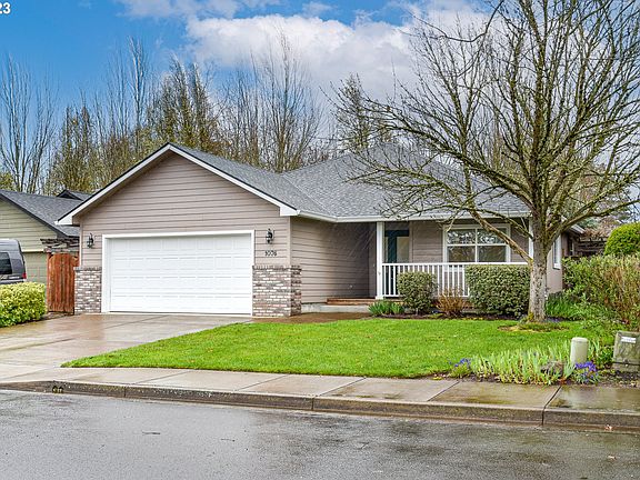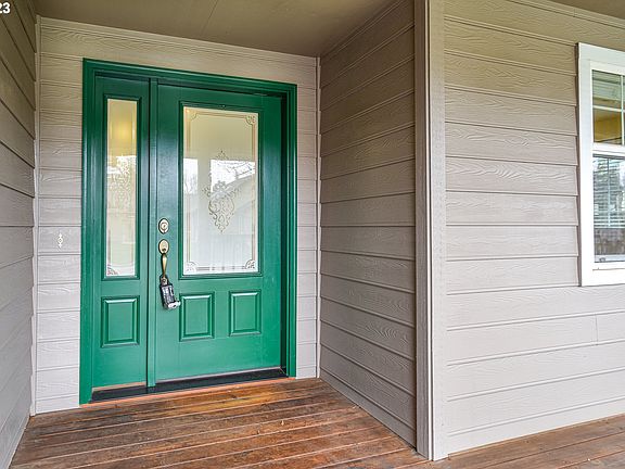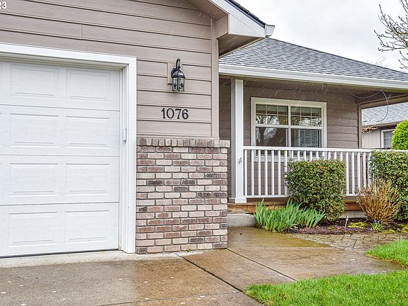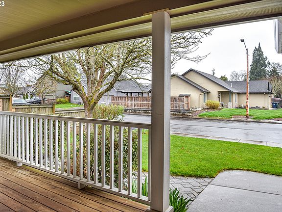 Welcome Home! Junction City living at it's best! Curb appeal galore with an inviting front porch. Good bones and many features in this home make this a desirable choice! Roof was replaced in 2021. The kitchen is a dream with lots of cabinets, counter space, pull outs, gas stove and a pantry. Place for breakfast table and room for bar stools at counter. Flexible space that can be used as a den, home office or dining room. French door leads out to a beautiful yard space that includes a covered deck, pergola with wisteria, established plantings and a storage shed. Backyard gate leads to the park! Bamboo flooring throughout most of the house - no carpet!! Gas fireplace will be cozy during Oregon winters! Primary bedroom has a large walk in closet. The attached bathroom has a walk in tub to provide relaxation after a long day! There are extra closets for storage throughout home and shelves in garage.