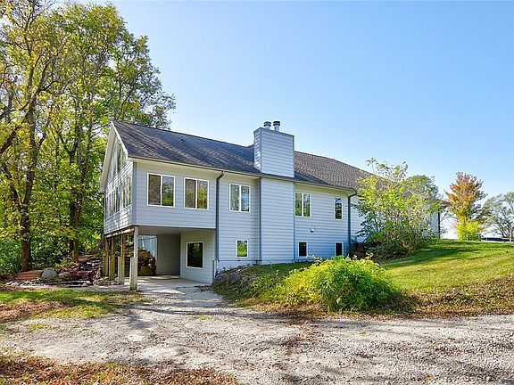 This custom 1.5 story offers peaceful remote living on 2.7 acres and is conveniently located near the Chautauqua Valley Bike Trail and Santiago Creak on a paved road just minutes from Bondurant, Altoona and Des Moines. Enjoy the breathtaking views of the mature oak and walnut trees from the wrap-around porch or the covered deck that are surrounded by extensive landscaping, including a waterfall, boulder walls and flagstone path. The 30x60 metal pole barn with hip roof is insulated/heated with 6” poured concrete floors and high clearance trusses. Upon entering the open floor plan, you will love the bright & airy living room with 9' ceilings, providing the perfect space for relaxation and unwinding near the fireplace. Eat-in kitchen offers cherry cabinets and plenty of room for entertaining. Your attention is immediately drawn to an insulated 3 seasons room w/knotty pine, 18' ceilings and TONS of natural light that flood the space. Main floor features amenities such as a master suite, guest bedroom, full bath and laundry room with access to the garage. The finished lower level walkout offers endless possibilities with a family room, 2nd kitchen, laundry room, full bathroom as well as two good sized bedrooms with potential for more.