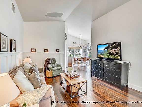 Updated Waterfront Modern Farmhouse in Boca Chase! Dramatic entrance w/soaring cathedral ceilings & picturesque windows of long and wide water views! Enjoy the sense of openness, volume & space. This home features 3 bedrooms, 2 baths with a split floor plan. Breath taking water views from almost every window! Decor you Find from Designers on HGTV, enjoy Bamboo hardwood flooring throughout, all new light fixtures, freshly painted, dining room window framed in farmhouse vintage trim, wainscoting, foyer has Mediterranean tile. The list goes on and on......The fabulous eat in kitchen features brand new Teak butcher block countertop on the huge island with a new Stainless steel deep farmhouse sink. Both bathrooms are updated and quite unique in design. Master bath boasts calm spa-like feel with grey stone tile, natural wood counters and double vessel sinks. New plumbing and toilets in both bathrooms. Guest bathroom has wood look tile floor w/new vanity. Tons of recessed lighting too. No popcorn ceilings/smooth finish. Brand NEW S-Tile roof! Just being installed. Screened in Patio & the backyard has plum trees. And did I mention “VIEWS!! VIEWS!! VIEWS!! Enjoy beautiful sunsets! Boca Chase's Hidden Lake is an amazing community for all ages with a low HOA fee of $160 a month that includes lawn care, Irrigation (water and maintenance), basic cable, community pool, play area, tennis, basketball and more. Amazing schools include Sunrise Park Elementary, Eagles Landing Middle, & Olympic Heights Community High. Pet friendly community! We welcome & love FHA and Va loans here!! Staged and Sold by Realtor Karen Kerpen 561-929-4737 Realty Home Advisors