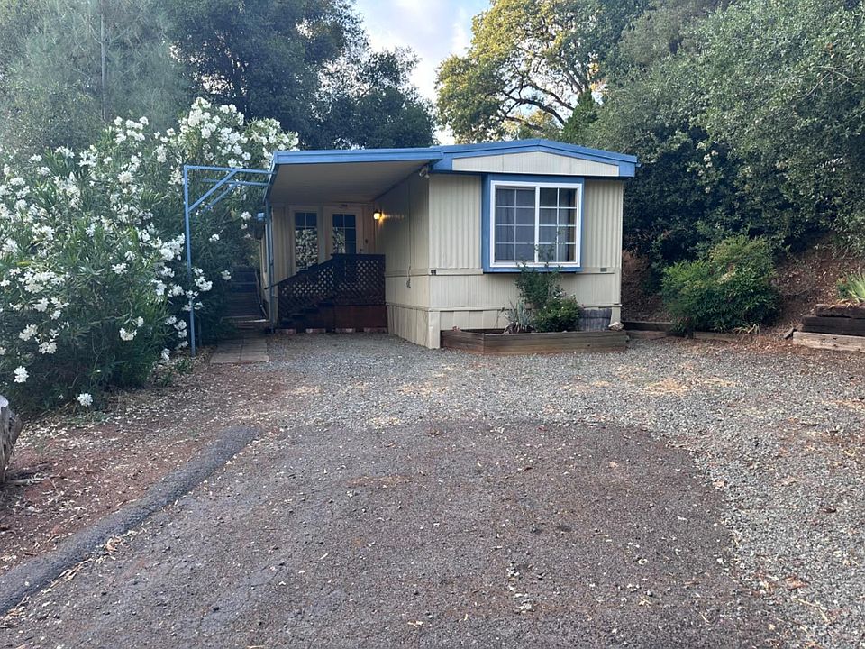 Adorable single wide nestled in a mountain like setting. Walking distance to State Park land with beautiful creek. Located inside Twin Pines all age mobile home community. Kids are welcome. Close to historic Jamestown and Chicken Ranch. This 2 bedroom (possible 3) 2 bath mobile home with indoor laundry and original pop out living room extension could be your home sweet home. Lots of parking for your guests and has a covered porch/entry. Rear deck with wheel chair ramp. Comes with washer & dryer. Come make this your serenity place.
