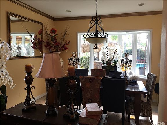 Outstanding Mediterranean home on a corner lot that shows like a model. The Living room has a 20ft celling and wood burning fireplace. Elegant formal dining room. Gorgeous granite counters accent the center island kitchen, complete with upgrade appliances, 18" tile floor with a breakfast area that views out to the patio. The family room is very comfortable and opens to the kitchen. The great master suite offers stunning wood floor, ample closet space and a private full bath with separate spa tub and shower. There is one guest bedroom with private bath on 1st floor, perfect for teen or home office. The cover patio with tile floor, ceiling fans and european columns highlights the rear grounds. Great pool and heated spa. There is a 3 car garage, paver driveway, dual zone A/C with tons of storage.
