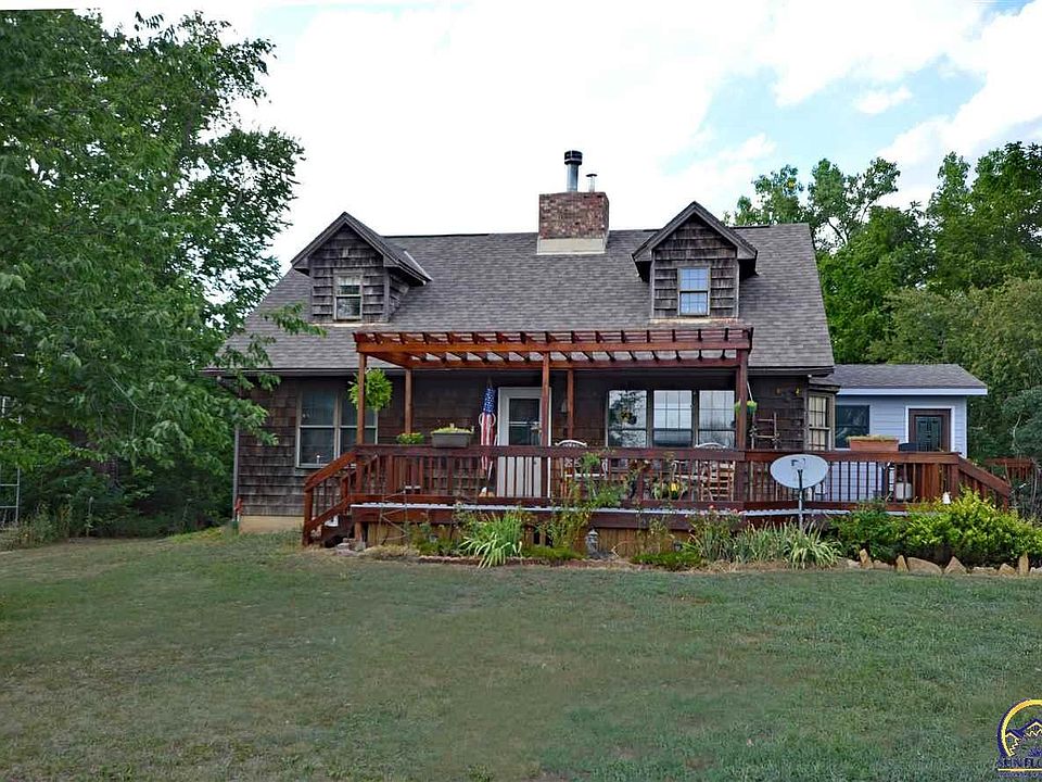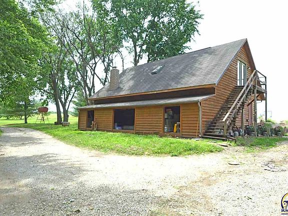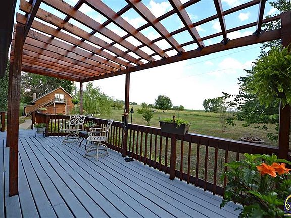 '84 built 3BR/3BA country home features a main floor master bedroom, full bath, and laundry. You'll love the rustic charm of the hardwood and quarry tile floors, custom millwork, beamed ceiling, and stone fireplace. The walkout basement, incl. kitchen and full bath could serve as a complete secondary living space. The '95 built, 1BR/1BA apartment above the 2++ car garage is perfect for extra income, office space, or in-laws quarters. Just minutes to Topeka, with travel all on paved roads.