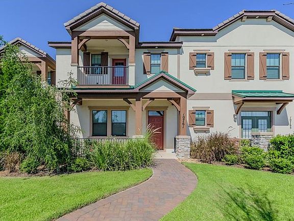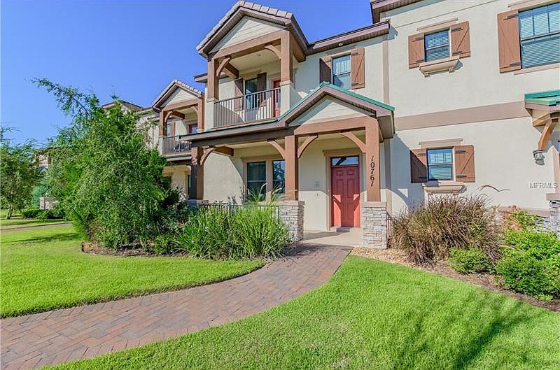 Gorgeous 3 Bedrooms/2.5 Baths/2 Story Townhouse - Builders Model! Over sized two car garage; enter home via a covered breezeway within a spacious, private courtyard covered with brick pavers. The first floor features 10' ceiling heights for a grand sense of spaciousness. Large great room with dining area and pass-through bar to the kitchen. The step-saving kitchen layout surrounds the chef with working surfaces and energy efficient GE stainless steel appliances. Natural gas range will excite the serious cook! Granite Counter tops and wood cabinetry with 42" upper cabinets for plenty of storage. The kitchen also has a few designer extras: a Café with a bench seat, and a large pantry with two walls of storage space. A "flex-office" enjoys natural sunlight from windows overlooking a covered porch. Upstairs, the Master Suite boasts a private balcony with Disney Fireworks View, large walk-in closet and a luxurious bath with both "his and her" vanities, and both a large soaking tub and glass enclosed shower. A trayed ceiling adds an elegant decorator touch. Two additional bedrooms and a conveniently located upstairs laundry area make this a perfect nest for couples with a home office and young families. Residents of Lakeside Village Townhomes enjoy a prized "walk to everything" lifestyle. Walk to: Publix Shopping Center, 7-11, Dry Cleaners yummy restaurants And much more. . .Minutes from Disney and featuring your own private balcony for a Nightly Disney Fireworks View!!