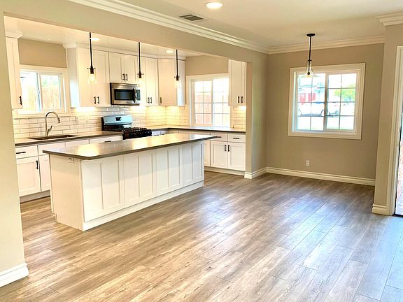 Beautifully remodeled home in prime Los Alamitos location! This 3-bed, 2-bath front house has been completely renovated throughout, including an open-concept kitchen and living area, dining space, and master suite with walk-in closet. There is a private, gated patio space and backyard, central A/C, and washer/dryer hookups in the unit. Kitchen includes dishwasher and stainless refrigerator. Walk to award-winning Los Alamitos schools and nearby shopping and dining. Owner pays for trash, sewer, and gardener. There are two detached homes on one lot. Shared one-car garage for storage, and driveway parking.