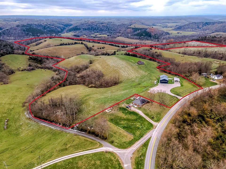 This 140 acre farm made up of 2 tracts, with road frontage on Buckeye Rd and Husticle Branch Rd, offers beautiful rolling hills, pasture land and flatland in the bottoms, is a must see! Located in the Buckeye area of Garrard county. This property offers access via nice paved road, logging road through the woods, 3 Barns, over a mile of water frontage on the historic Paint Lick Creek. A 100 ft waterfall, a spring fed pond filled with smallmouth bass. The whole farm is filled with deer, turkey and other wildlife. Two new RV hookups which include electric, water and septic. The views are amazing! You dont want to miss out on this one!
