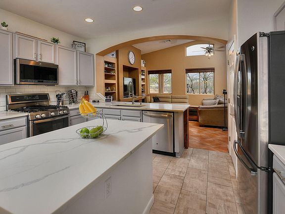 * VIEW VIDEO: https://az.movinghometour.com/22006725_Tucson%20MLS * Remodeled 4 bedroom/2 bath home with Pool and Spa in gated Rancho Cancion West. Great room is open to the kitchen and exits through sliding glass doors to the backyard oasis. Kitchen has quartz counters, subway tile backsplash and all newer (2017) Stainless steel appliances. Gas stove with built-in Wi-Fi. Split bedroom plan. All bedrooms feature wood laminate flooring. The Master bedroom includes huge bathroom with walk-in shower and dual marble-top vanities. Spacious walk-in closet. Everyone will love the pool and spa with rock waterfall & lagoon with umbrella. Or relax under the covered patio & always green turf grass with views of the Rincon Mountains. 2-car garage. Tons of room to plant a garden. Gated community of 150 homesites with a low HOA fee.