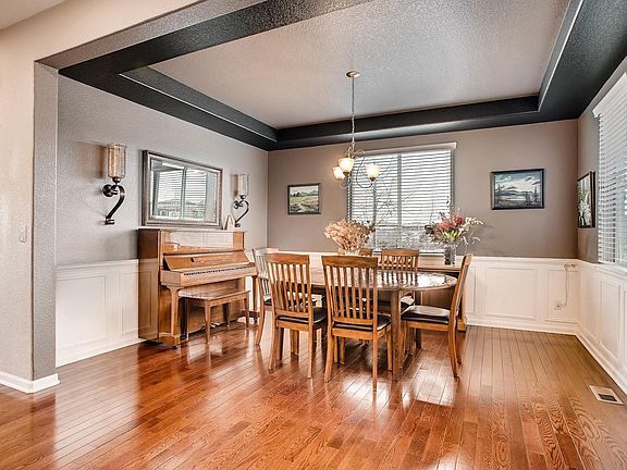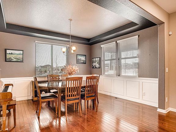 Stunning 2 story w/ finished walk out basement has everything you've been looking for! This home features 5 bed, 4 bath & 3 car garage. As well as a beautiful gourmet kitchen, formal dining, office, theater room, & exercise room. The main floor has gorgeous hard wood floors & custom paint. Open floor plan w/ lots of natural light. The kitchen is a chef's dream w/ double ovens, plenty of counter space, walk in pantry & eat in space; all open to the oversized living room w/ cozy gas fireplace. Spacious master retreat has private 5 pc bath w/ walk in closet. Three additional bedrooms, full bath & laundry are conveniently located on upper level. Finished walk out basement has the 5th bedroom, full bath, top of the line theater room, exercise room and a photo studio / flex space. Back yard was made for relaxing w/ deck, hot tub, gas fire pit. Close to parks and trails. Douglas County School District. No sign in yard. Save money on energy bill w/ nest thermostat and solar panels