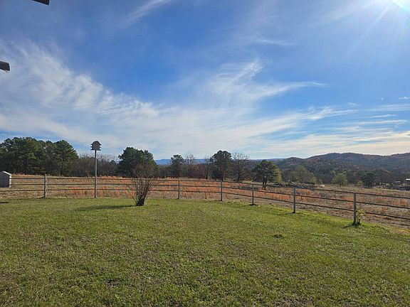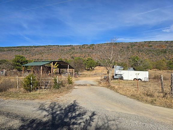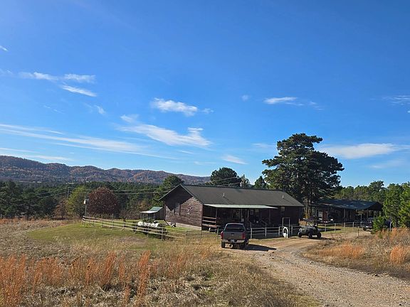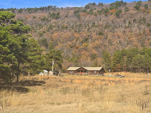 This absolutely charming estate has a most diversified topography that will delight the spirit and soul of those looking for that perfect home! The Retreat is what we call it. This 80 Acre estate is nestled on the foot of the historical Buffalo Mountain, an enchanting mountain with written history in the Spanish archives. Stories of gold mines that can still be seen today on the west end that Spanish Conquistadors in the sixteen century mined. Buffalo Mountain rises to 2060' north of the rustically decorated log sided home. To the south are views of the famous Potato Hills that are geological wonders of the world. The Retreat is in the Falfa Community, just off Hwy 1/63 on a nice county road 5 miles west of Talihina, OK and 6.5 miles east of Buffalo Valley, OK. It is suitable for a hunting preserve and or a livestock ranch. The current owner ran 15 head of cows and a bull very successfully and could have run more. The 80 Acres sweep up the mountain one half of a mile from the Bermuda grass valley pastures at 860' to the north property line at 1520'. The top half is covered in a beautiful natural forest with stepped benches, rock outcroppings that form natural shelters, boulder fields and mountain springs. This is where the monster bucks live, turkey, black bear, squirrel and other furry critters reside. A regular hunting preserve. The bottom half is where the homestead is with the pasture. The home is a nicely appointed, well insulated 1517 sf log sided home with 3 bedrooms, office, 2.5 baths. Living area features a vaulted ceiling with pine beam rafters, tongue groove ceiling/walls with a log accent wall. Kitchen has black granite countertops, ash cabinets and stainless appliances that stay. A very attractive kitchen. Appurtenances and amenities are many, including; Legal access via a paved county road, 14x20 well insulated she-shed, two car carport garage that includes a 10x12 man cave w/toilet, game processing room w/4x4 walk-in game cooler, 25x50 hay barn, livestock working corrals, 26x40 dog kennel, shop building, 12x12 log hunter's cabin with 4x12 front porch, storm shelter and a nice little orchard that was established a few years ago. The water is provided by a water well that flows 17.5 plus gallons per minute. There are also two water meter boxes that are not in use. Also, two ponds for stock and game. There comes a time in everyone's life when it is time to pass the torch over to the next runner, that time has come. PLEASE CALL LISTING BROKER DIRECTLY FOR YOUR PERSONAL TOUR, you'll be happy you did!