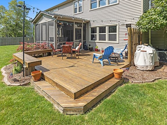 Wow! This beauty is in Carmel's 5 star school district and in Park at Weston Place. Independence Way is a 4 bdrm, 2.5 bath, 3.5 car garage w/ finished basement. Interior features include a spacious kitchen w/ island that opens into the living room, gas fireplace, dining room, formal living room, updated primary bath w/ custom shower, and a spacious finished basement w/ storage area. Exterior features include .48 wooded view lot that would be great for entertaining your guests, large deck, and a screened-in porch for that morning coffee. The neighborhood has a pool, baby pool, tennis/pickleball and basketball courts, pavilion w/ pond view, and an awesome playground. You will also be just minutes from all your shopping and entertainment needs